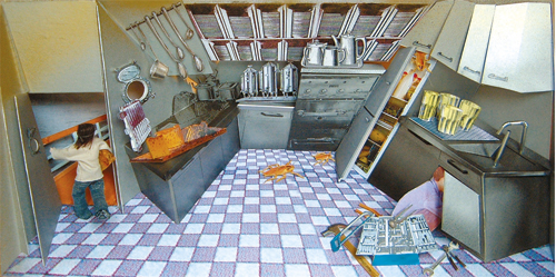 Dit is de keuken aan boord van het schip circa 1970.