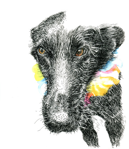 Hondenportretten, 2013-2020 Serie Pentekeningen in inkt van honden uit de buurt.